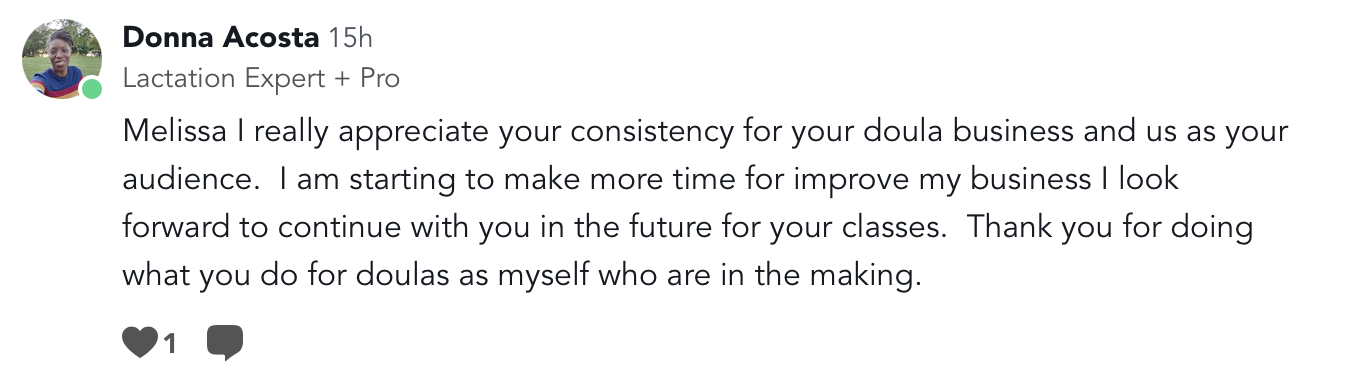 a module of 4 self-paced trainings, a private group chat, plus my top-rated Doula Contact and my Business Start-Up Checklist.